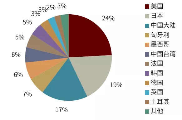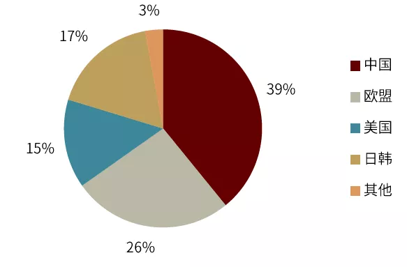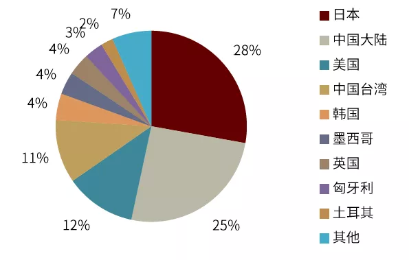 圖表:2019年全球碳纖維運(yùn)行產(chǎn)能分布