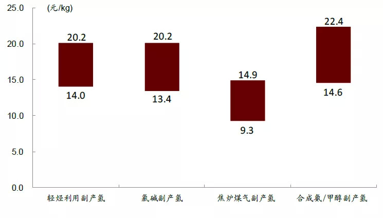 圖表:中國電解水及化石能源制氫成本(2019年)