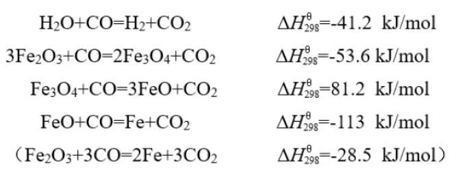 圖表:富氫豎爐中放熱反應(yīng)與吸熱反應(yīng)同時(shí)進(jìn)行