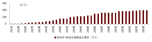 圖表: 2021E-2060E 儲(chǔ)氫瓶需求測算