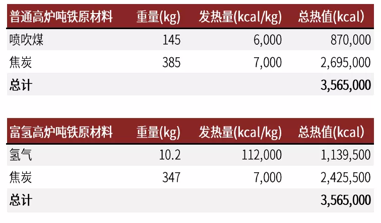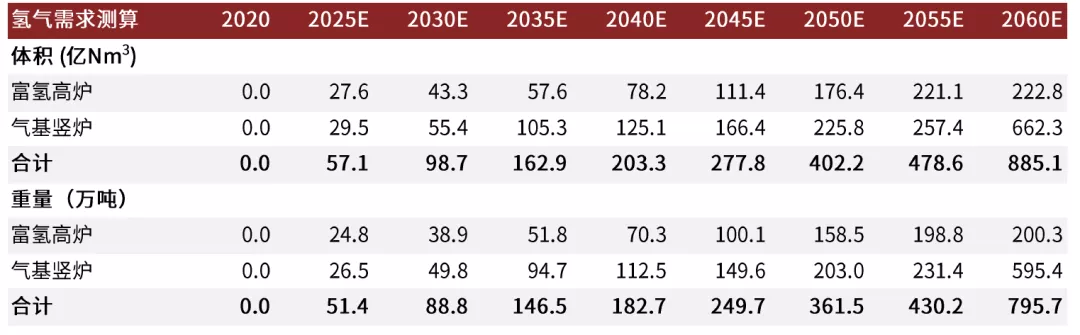 圖表:2020年富氫還原高爐工藝消耗氫氣量測算