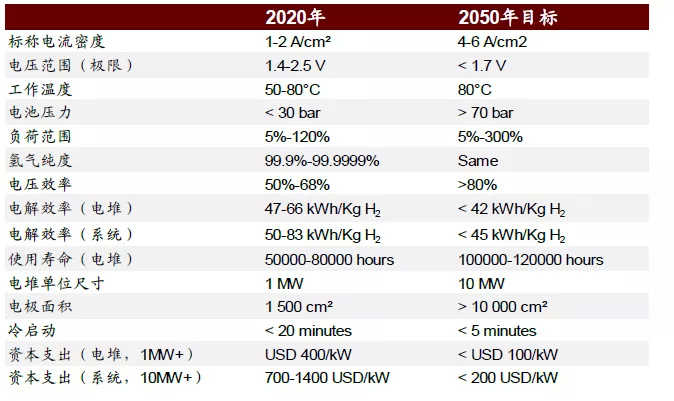圖表:堿性電解制氫關(guān)鍵技術(shù)指標(biāo)預(yù)期