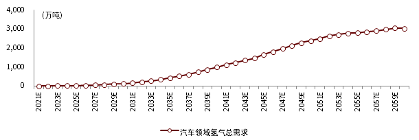 圖表: 2021E-2060E 汽車行業(yè)氫氣總需求量預(yù)測