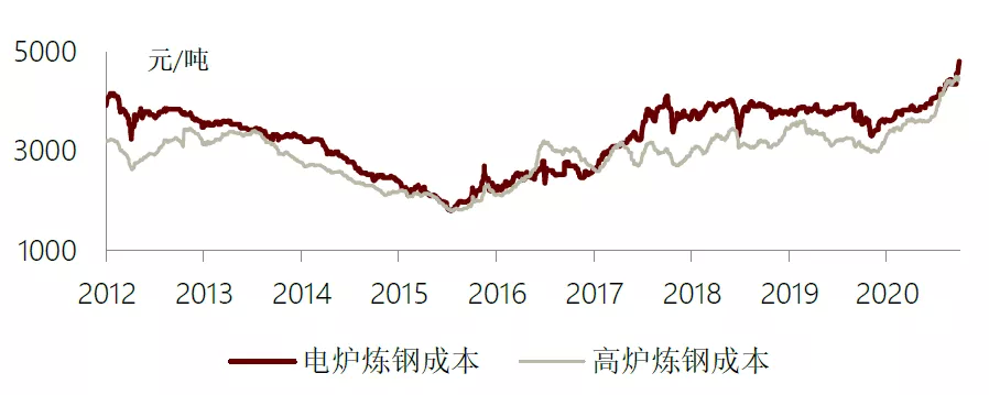 圖表:高爐電爐煉鋼成本差距制約電爐發(fā)展