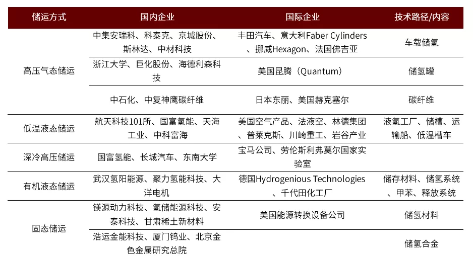 ?固態(tài)儲(chǔ)運(yùn):國內(nèi)相關(guān)技術(shù)尚處于研究或示范階段。固體儲(chǔ)氫具有密度高、壓力低等優(yōu)勢,但材料端反應(yīng)溫度、循環(huán)性能仍待優(yōu)化。國外相關(guān)技術(shù)在燃料電池潛艇中獲得商業(yè)應(yīng)用,國內(nèi)則在部分領(lǐng)域得到示范應(yīng)用。