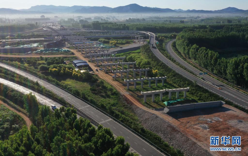 這是6月6日在遵化市境內(nèi)拍攝的京秦高速公路遵(遵化)秦(秦皇島)段與唐(唐山)承(承德)高速下院寺樞紐互通建設(shè)工地(無(wú)人機(jī)照片)。