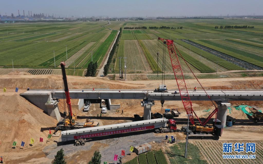 6月4日,工人在灤州市河北東海特鋼集團(tuán)有限公司“公轉(zhuǎn)鐵”專用線項(xiàng)目橋梁工程建設(shè)工地施工(無人機(jī)照片)。