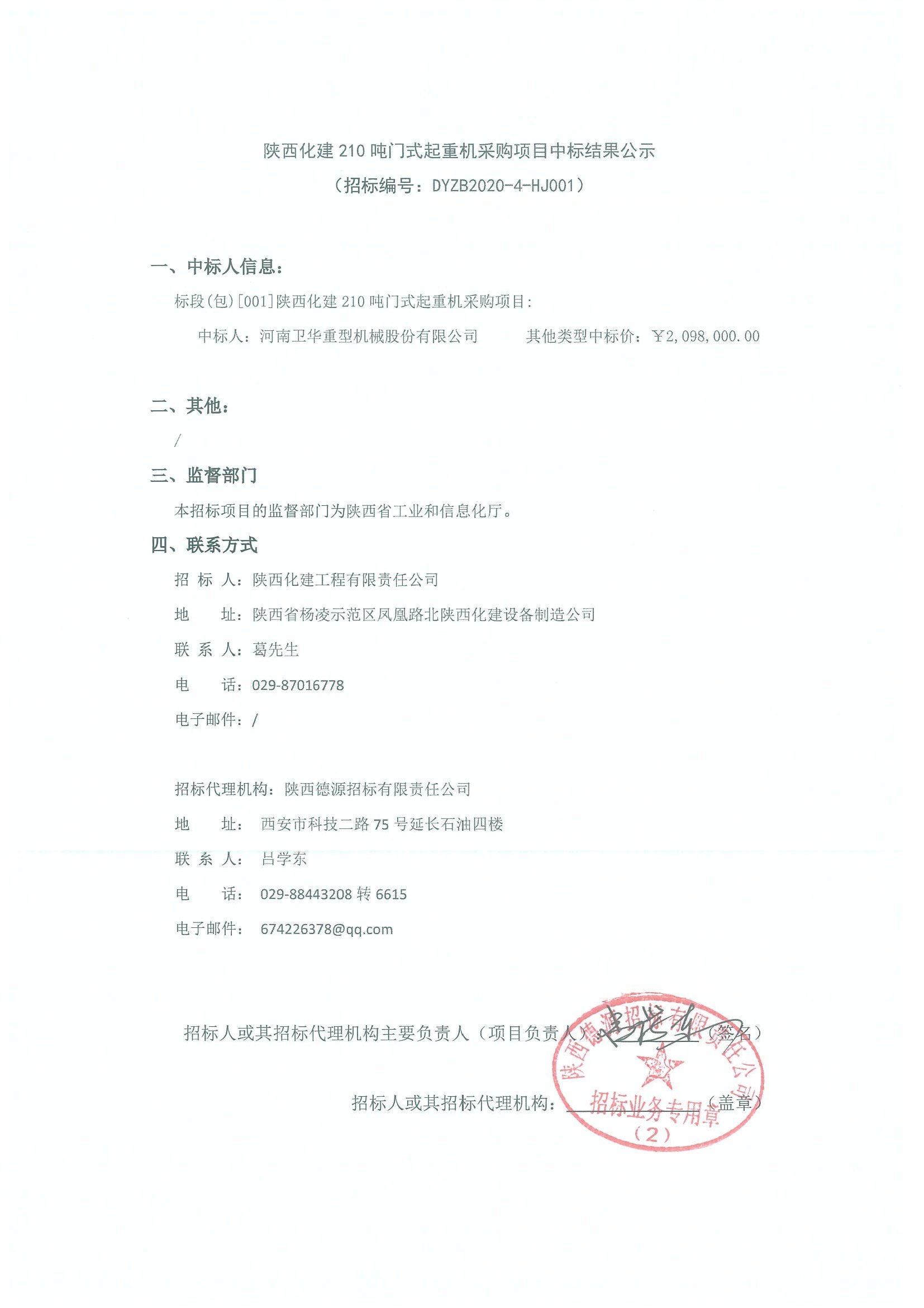 移動版:陜西:陜西化建210噸門式起重機采購項目中標(biāo)結(jié)果公示