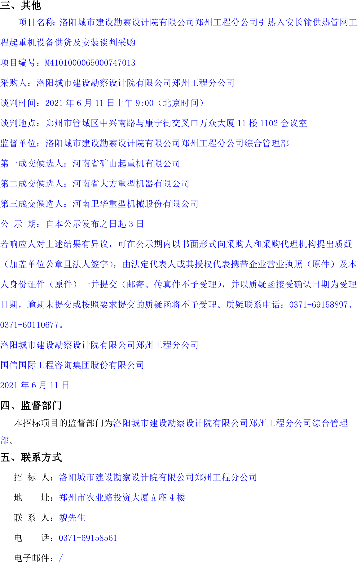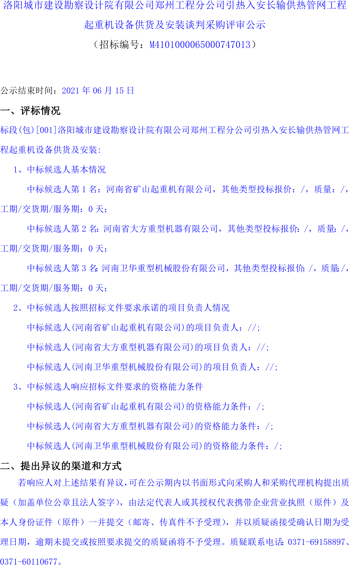 移動版:河南:起重機設備供貨及安裝談判采購評審公示