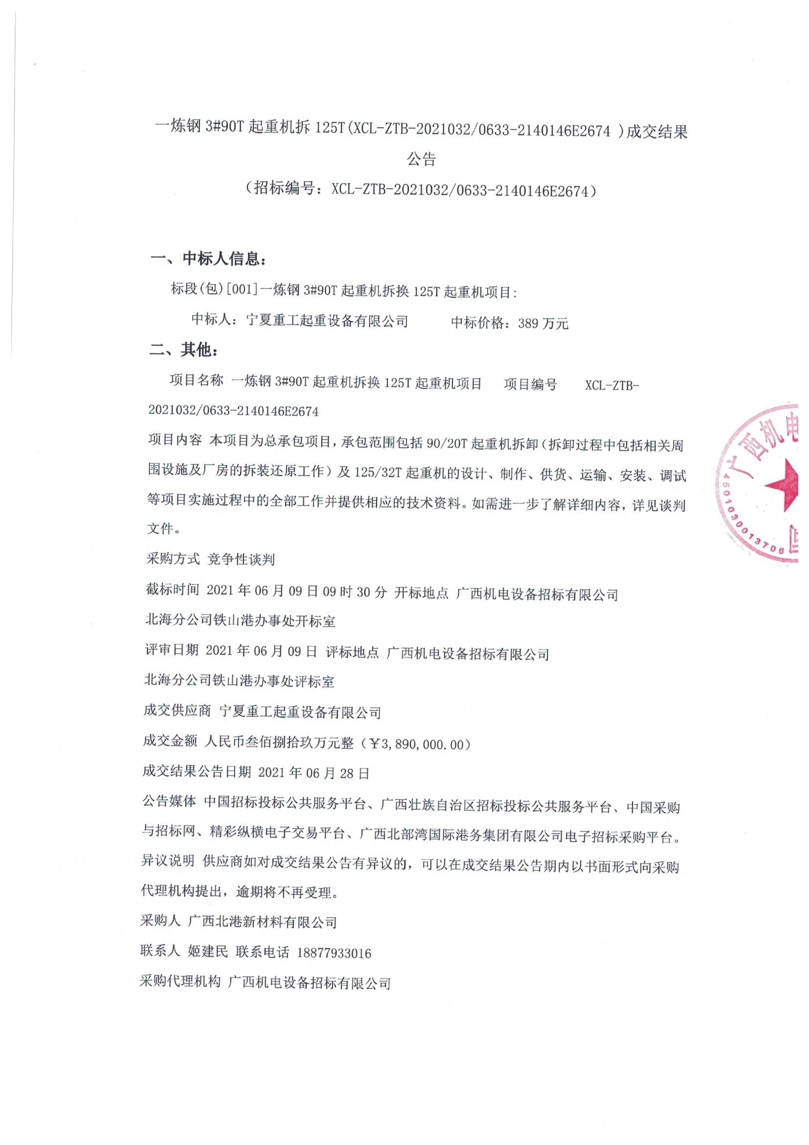 移動版:廣西;起重機(jī)拆成交結(jié)果公告