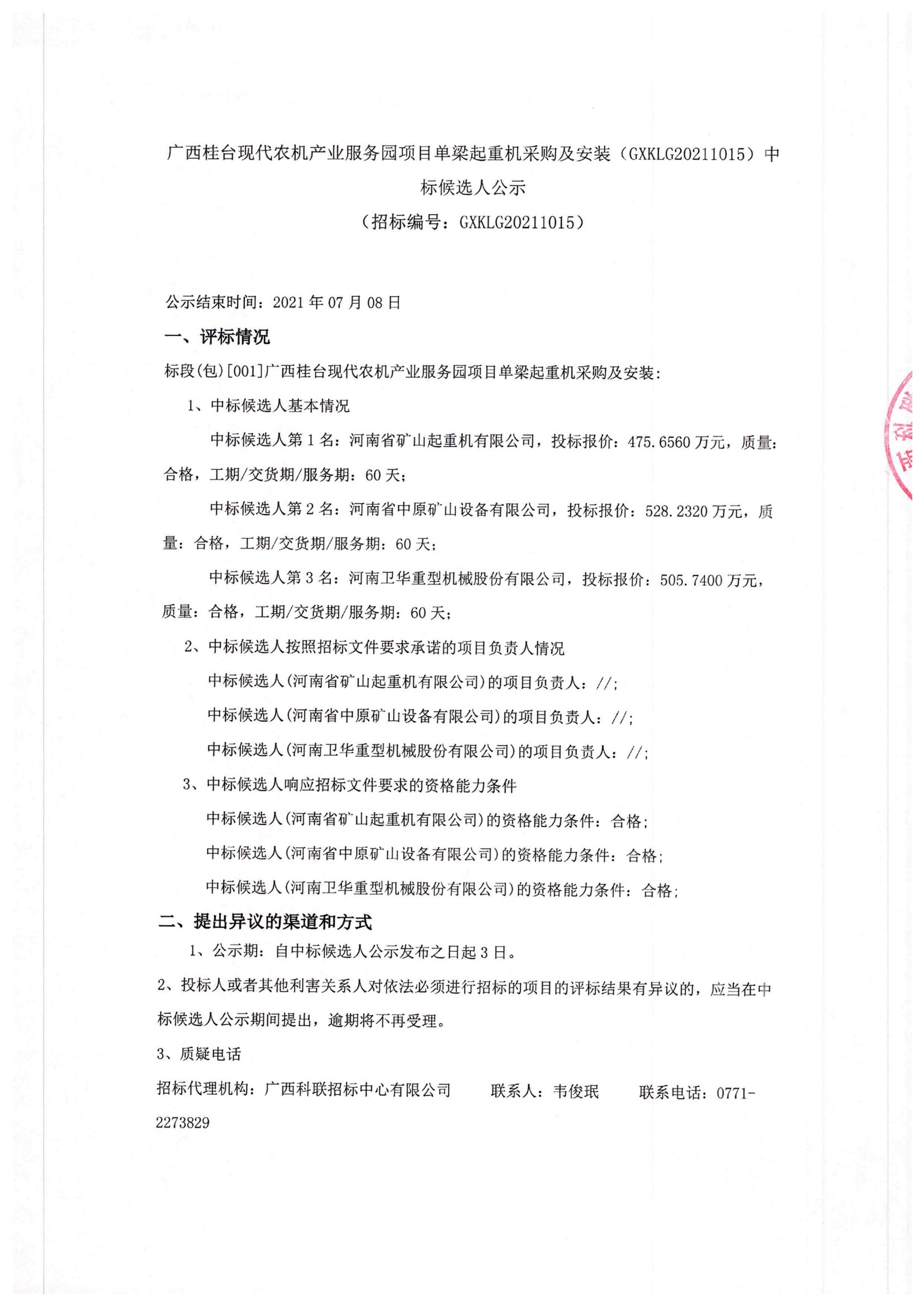 移動(dòng)版:廣西;單梁起重機(jī)采購及安裝中標(biāo)候選人公示