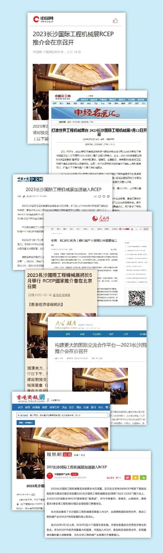 湖南日?qǐng)?bào)、湖南經(jīng)視、長(zhǎng)沙晚報(bào)、長(zhǎng)沙電視臺(tái)、瀟湘晨報(bào)、騰訊網(wǎng)、新浪網(wǎng)、鳳凰網(wǎng)、搜狐網(wǎng)、今天頭條等20余家省市干流媒體,以及長(zhǎng)沙發(fā)布、長(zhǎng)沙調(diào)查、長(zhǎng)沙會(huì)議、自貿(mào)長(zhǎng)沙等多家政務(wù)大號(hào)同樣聚集2023CICEE。湖南經(jīng)視在推介會(huì)當(dāng)天下午的《經(jīng)視新聞》欄目中敞開了對(duì)推介會(huì)的現(xiàn)場(chǎng)專題報(bào)導(dǎo),現(xiàn)場(chǎng)采訪了德國海瑞克我國首席代表胡成功和山東山推工程機(jī)械進(jìn)出口有限公司總經(jīng)理柴森,兩位嘉賓都表明“十分看好2023CICEE的世界平臺(tái)效果,十分期待2023CICEE”;湖南日?qǐng)?bào)則是在頭版報(bào)眼的方位報(bào)導(dǎo)了2023CICEE,文章中著重介紹了2023CICEE進(jìn)一步聚集“一帶一路”建設(shè),融入RCEP“朋友圈”,對(duì)接?xùn)|盟經(jīng)貿(mào)協(xié)作的重要功用,并具體介紹了2023CICEE的基本情況和特色優(yōu)勢(shì)。