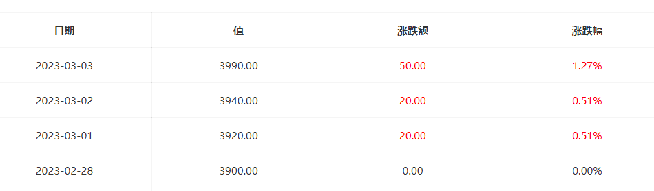 3月1日鋼坯價(jià)格由3900元/噸上漲20,到達(dá)3920,3月2日再漲20,而到3月3日猛漲50,到達(dá)3990元/噸,直逼4000!