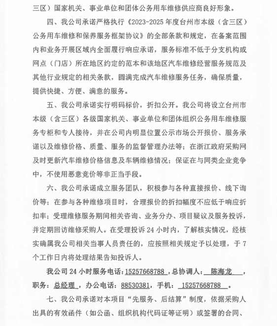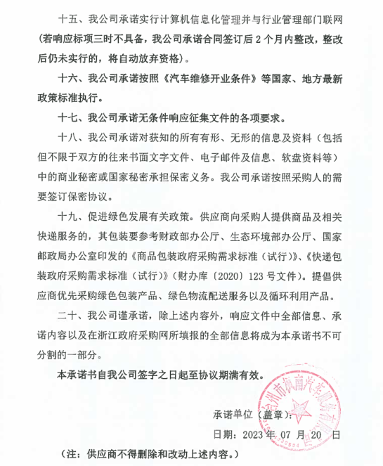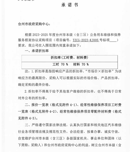 一、二類維修供應(yīng)商(綜合修理類) 臺州市楓南汽車服務(wù)有限公司一、二類維修供應(yīng)商(綜合修理類) 承諾書: