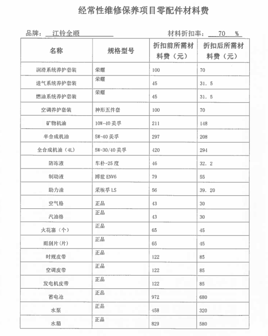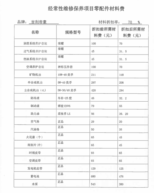 經(jīng)常性維修保養(yǎng)項目零配件材料費(fèi):