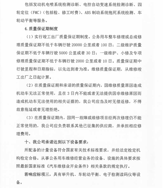 16、為更好的全面周到的服務(wù)于協(xié)議單位,我司可根據(jù)協(xié)議單位車輛規(guī)模提供升降機(jī),安裝在協(xié)議單位提供的維修場地。并配備一定量的維修工具及常用配件。