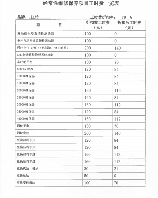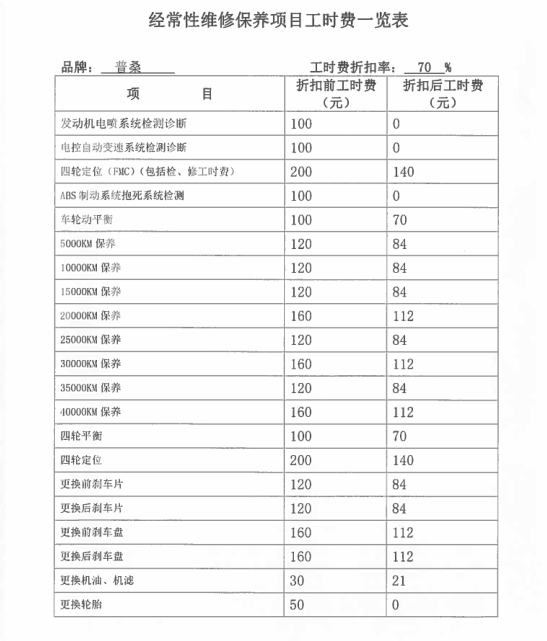 經(jīng)常性維修保養(yǎng)項目工時費(fèi)一覽表: