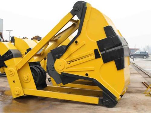 抓斗,是指起重機抓取干散貨物的專用工具。由兩塊或多塊可啟閉的斗狀顎板合在一起組成容物空間,裝料時使顎板在物料堆中閉合,物料被抓入容物空間,卸料時顎板在料堆上懸空狀態(tài)下開啟,物料散落在料堆上,顎板的開合一般由起重機起升機構鋼絲繩操縱。抓斗作業(yè)無繁重體力勞動,可達到較高的裝卸效率并確保安全,是港口主要干散貨裝卸工具。按作業(yè)貨物的種類,可分為礦石抓斗、煤炭抓斗、糧食抓斗、木材抓斗等
