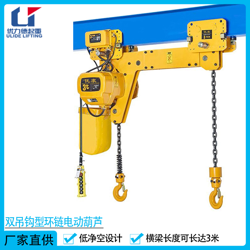 雙吊鉤型環(huán)鏈電動(dòng)葫蘆采用低凈空設(shè)計(jì),有效提高了貨物的起升空間;