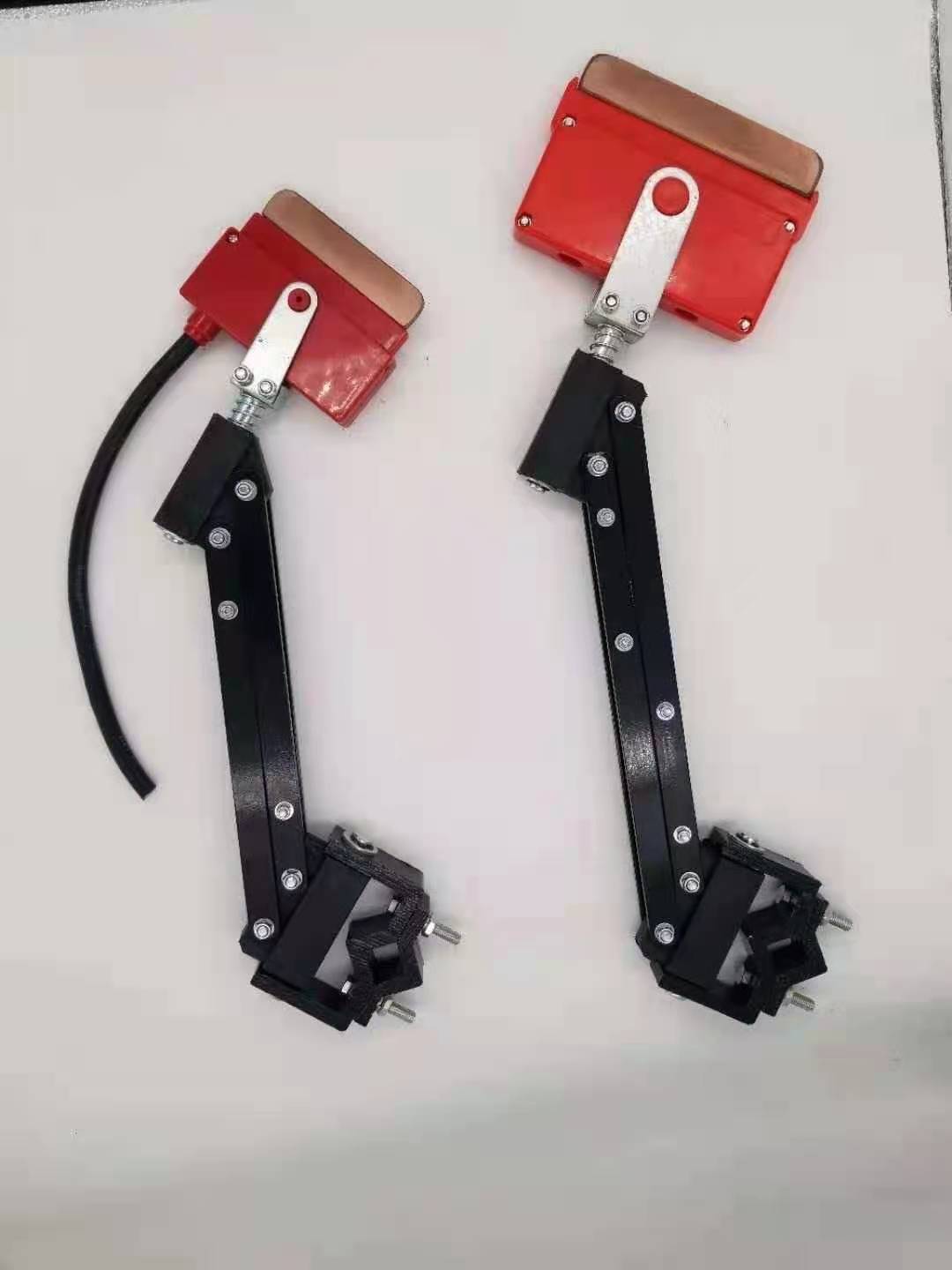 集電器滑觸線系統(tǒng)中集電側(cè)拾取電能的主要裝置,它通過(guò)集電刷與導(dǎo)軌的滑動(dòng)接觸,將電能直接傳導(dǎo)至用電器,從而實(shí)現(xiàn)系統(tǒng)的移動(dòng)供電。集電器由機(jī)械結(jié)構(gòu)的張力裝置和直接與導(dǎo)軌滑動(dòng)接觸的集電刷兩部分組成。