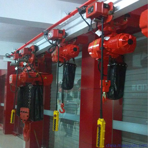 環(huán)鏈電動(dòng)葫蘆額定起重量為 0.1~5噸, 環(huán)鏈電動(dòng)葫蘆的特點(diǎn):性能結(jié)構(gòu)先進(jìn),體積小,重量輕,性能可靠,操作方便,適用范圍廣,對(duì)起吊重物、裝卸工作、維修設(shè)備、吊運(yùn)貨物非常方便,它還可以安裝在懸空工字鋼、曲線軌道、旋臂吊導(dǎo)軌及固定吊點(diǎn)上吊運(yùn)重物。