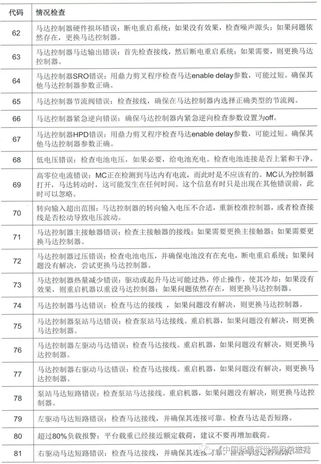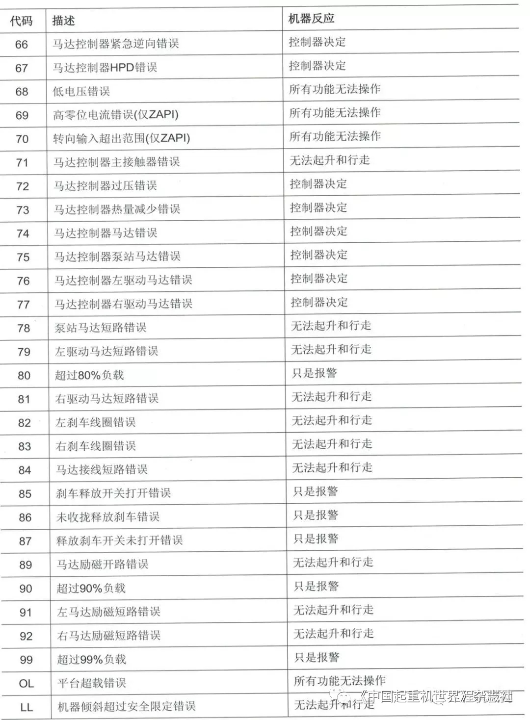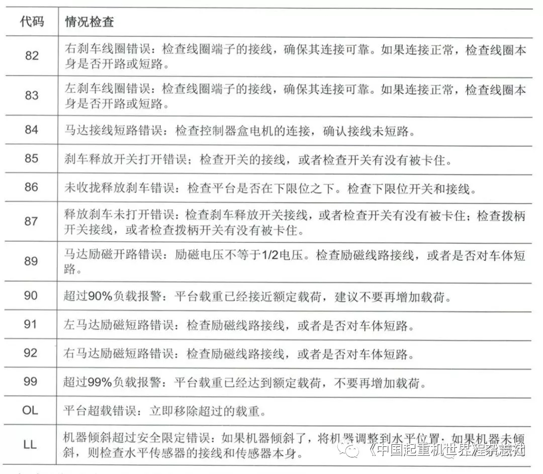 移動版:高空作業(yè)平臺故障代碼描述及排除方法1